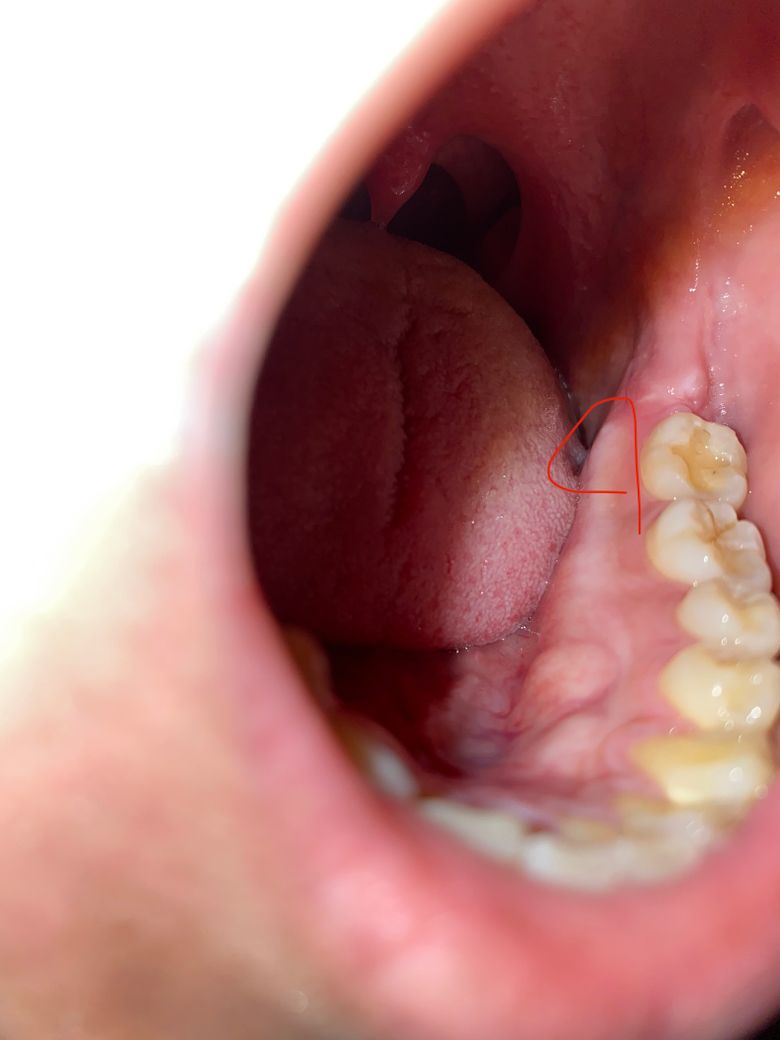 저기 어금니 잇몸 끝에 하얀게 있는데요 만져뷰면 딱딱합니다. 혹시 어금니 치아가 잇몸 밖으로