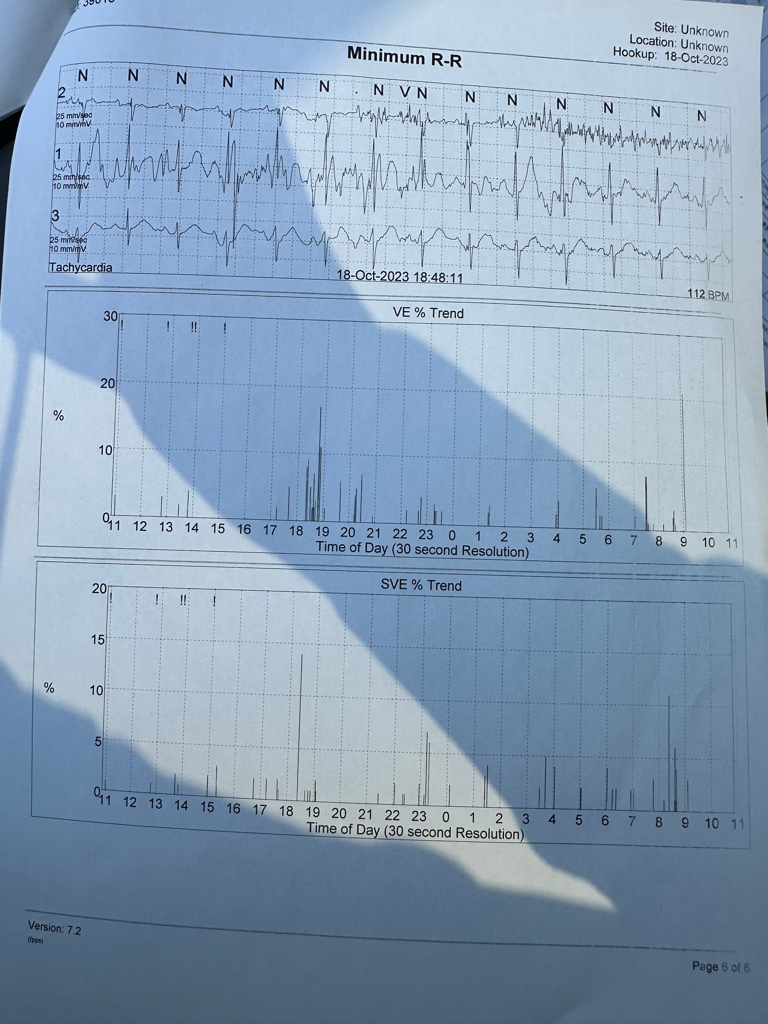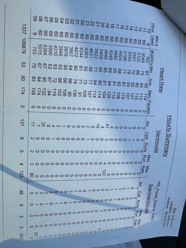 심실성 부정맥이 전체 맥박의 1%미만이며 심방성 (상심실성) 부정맥도 1% 미만이기 때문에 부정맥이 심하지 않다고 판단할수 있겠습니다.