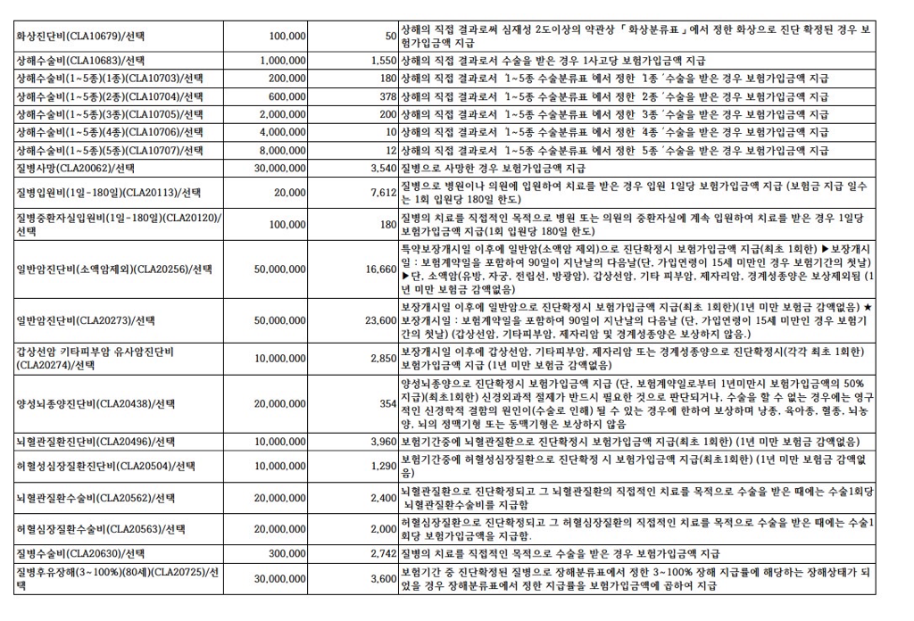 질병 입원비. 암진단금. 유사암 진단비. 암 치료및 수술비 입원비. 화상진단비.