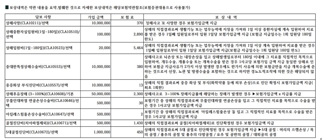 상해 종 수술비. 질병 종수술비. 골절진단금. 뇌혈관, 허혈성 질환 진단금 및 수술비.