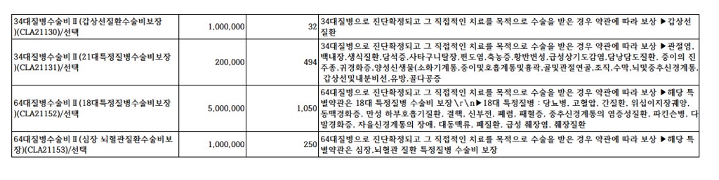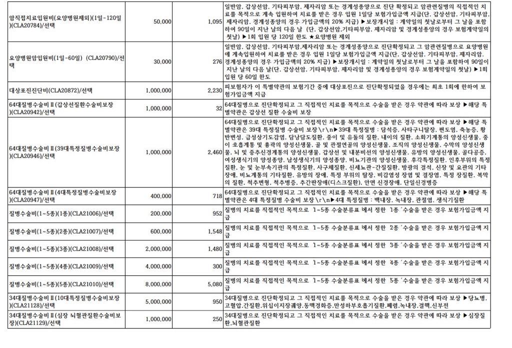 64대 질병수술비, 34대 질병수술비, 질병입원비,상해입원비,