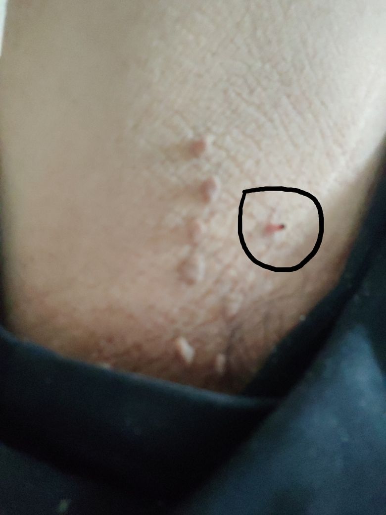 겨드랑이의 쥐젖중에 하나가 끝이 검은색으로 되어서 만져보니까 딱지난것처럼