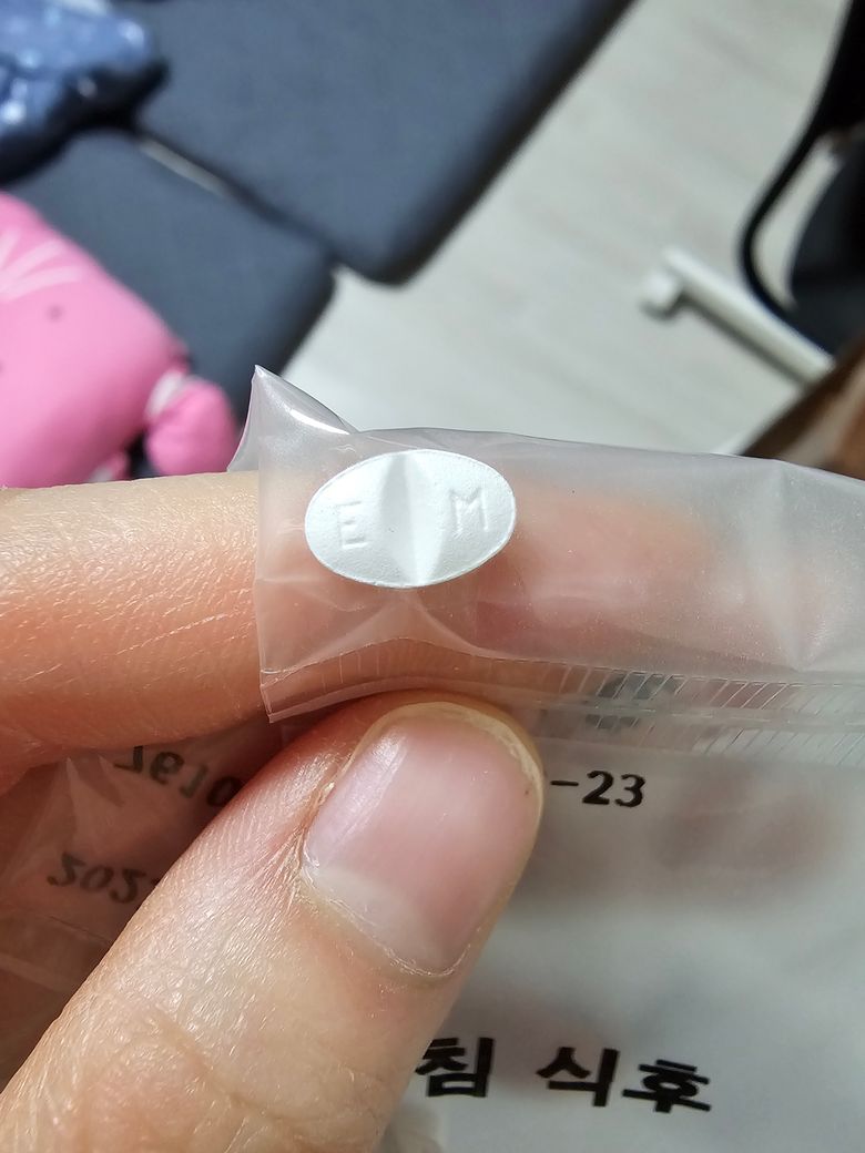 EM이라 표기된 하얀색 타원형 알약이예여
