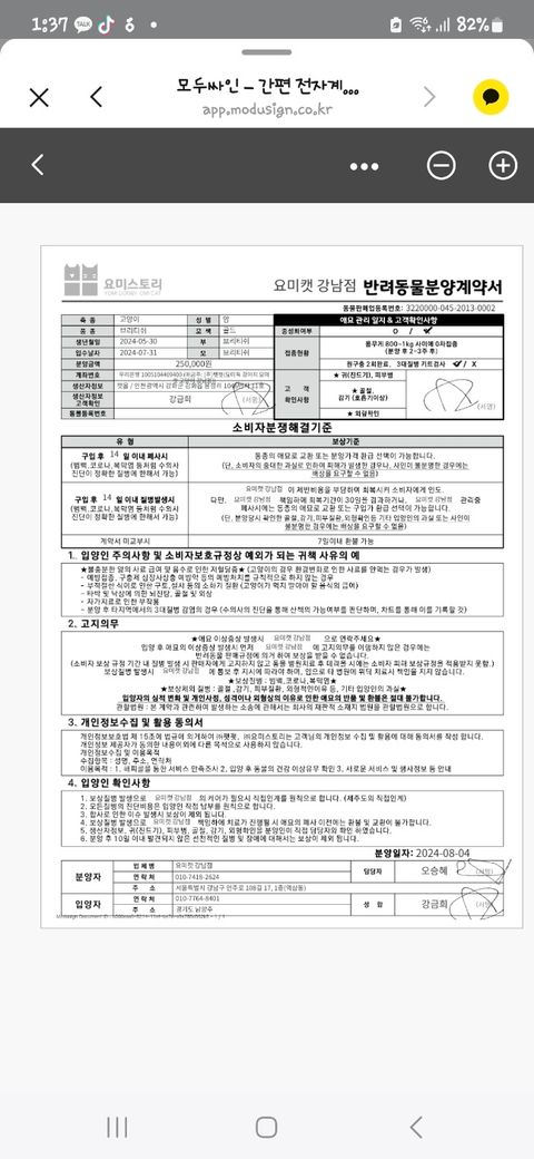 나중엔 그럼 같은아이 여자아이로 분양 받겟냐고 오늘 대려오는 날이니 저녁에연락주겟다고 하고 끊더니