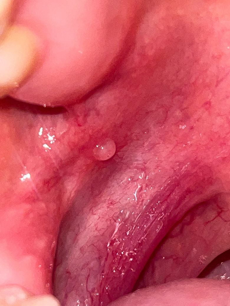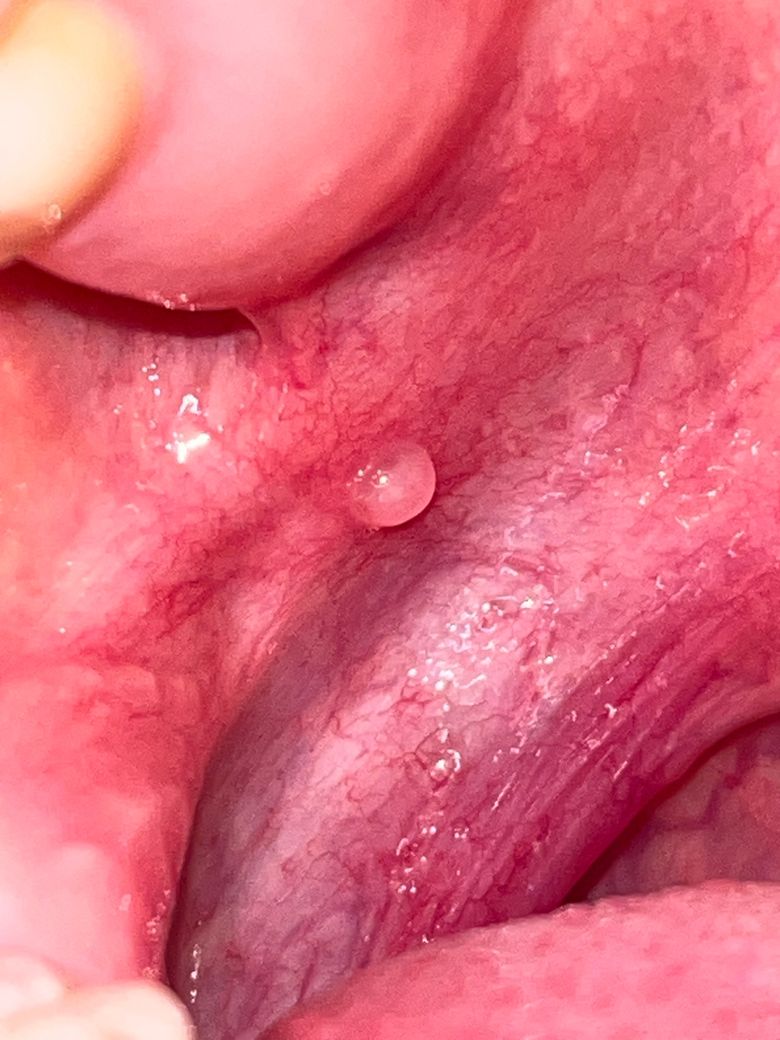 목안에 이런 물집이 같은 자리에 두달 정도 계속 생기고 있어요.ㅠㅠ