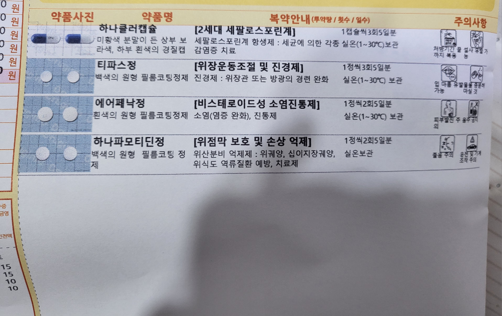 감기랑 방광염약 처방 중에 소염진통제가 겹치니 한가지는 빼고 드셔야 합니다