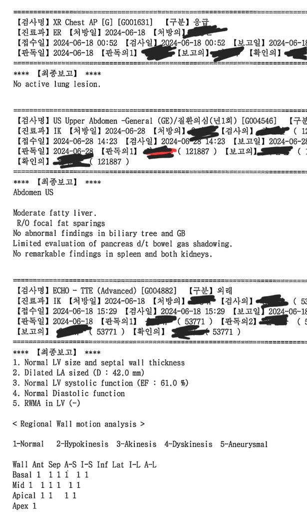 이미 다음주에 정밀검진이 예약되어있습니다.