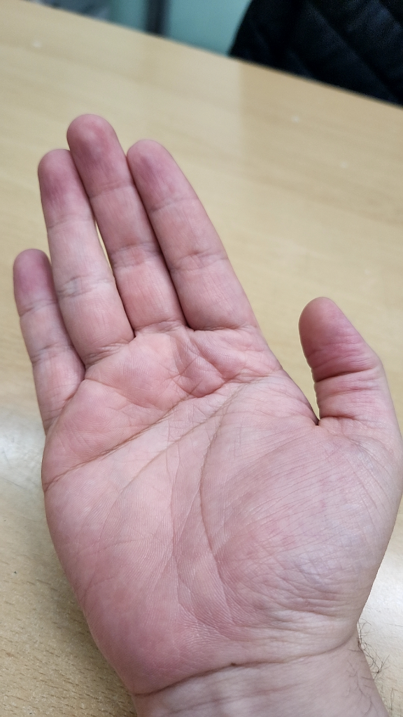 지방간 혹은 간수치 상승일 때 손바닥이 붉어지지는 않습니다
