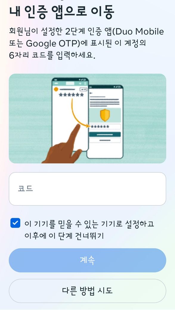 아마 구글 OTP나, duo OTP가 등록된것으로 보여요.