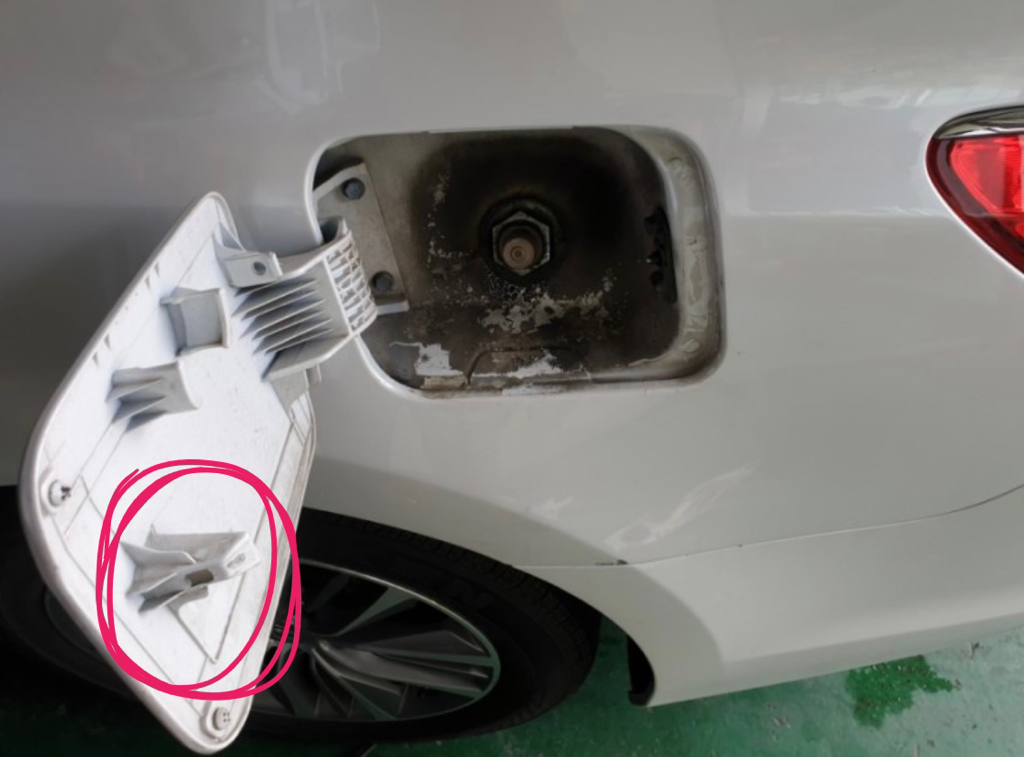 제 차는 아니지만 주유하다가 저 플라스틱 부분을 땡강 처버려서 또각 부러졌습니다ㅜㅜ본드로 붙히자니 위험할 것 같고 주유할때마다 테이프때고 다시 붙히고 이러고 다니고 있는데 테이프 찍찍이 검은 자국남고 해서