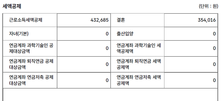 홈택스 연말 정산 예상 세액 조회 하니 결혼 항목이 354,016 원 로 나오네요