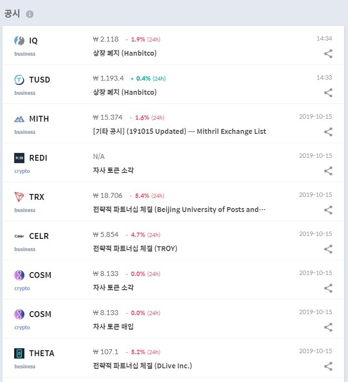 암호화폐에서 발생하는 모든 사건을 공시할 것 같지는 않은데요, 암호화폐에서 어떤 사건등이 있을때 공시하는것인지 궁금합니다.