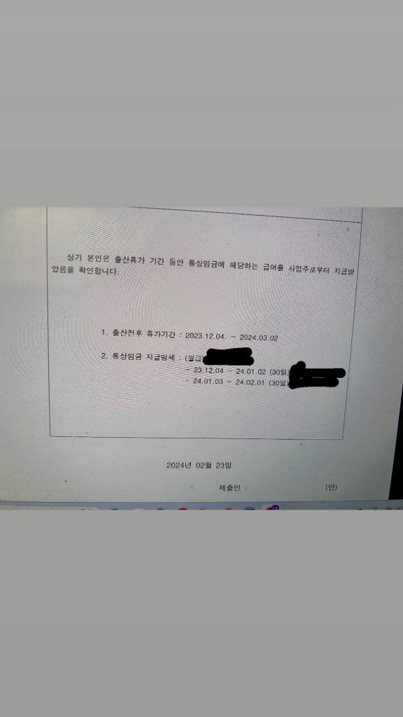 그런데 회사에서 출산휴가 신청할 확인서에