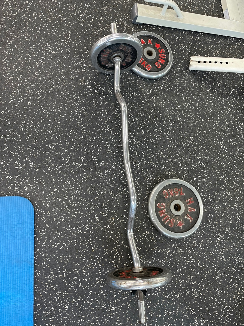 사진과 같이 이두 운동도 하고 삼두 운동도 하는 바벨 바 인데요. 일직선이 아니라 중간데 구부러져 있는데요. 과학적인 원인이 있는지 궁금합니다.