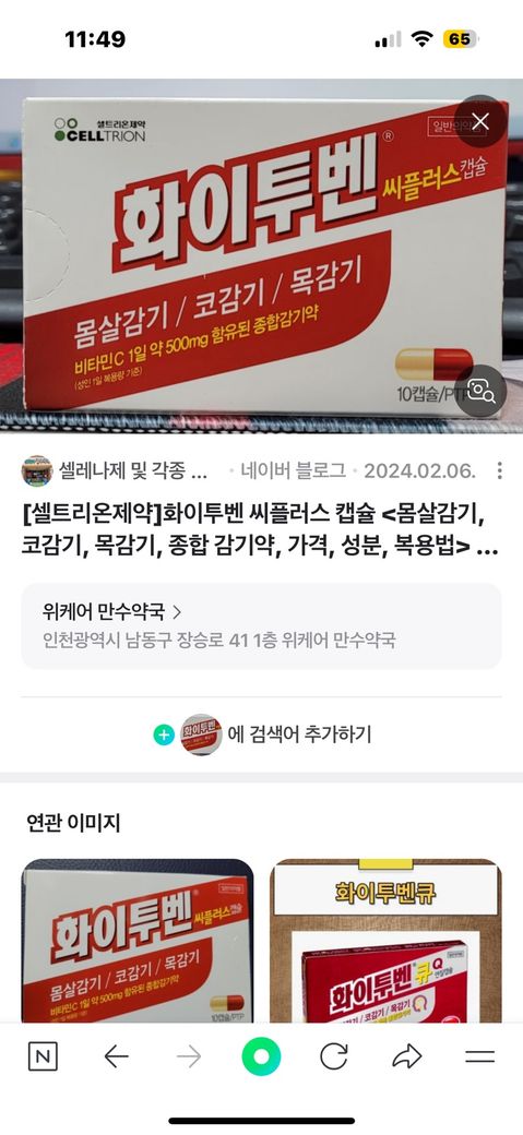 아침에 일어났는데 목이 넘 아파서 화이투벤 빨강색 한알 먹었는데
