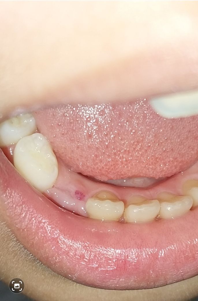 초등아이 아래 유치송곳니 발치하고 몇개월이나 지났는데 잇몸에 자꾸 저렇게 빨간것이 생겼다가 가라앉았다가 반복입니다.