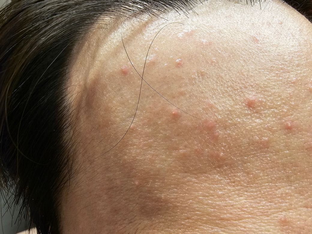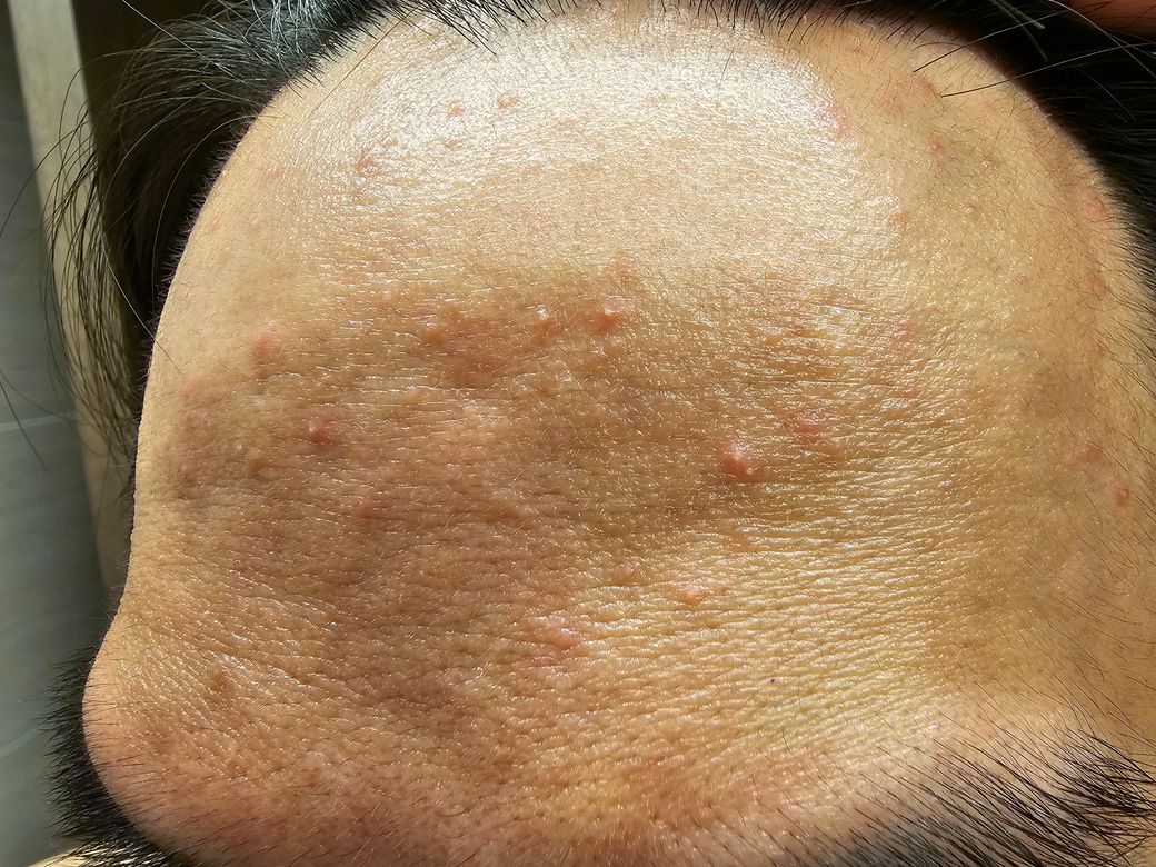 이마는 농포들이 자잘하게 있습니다.