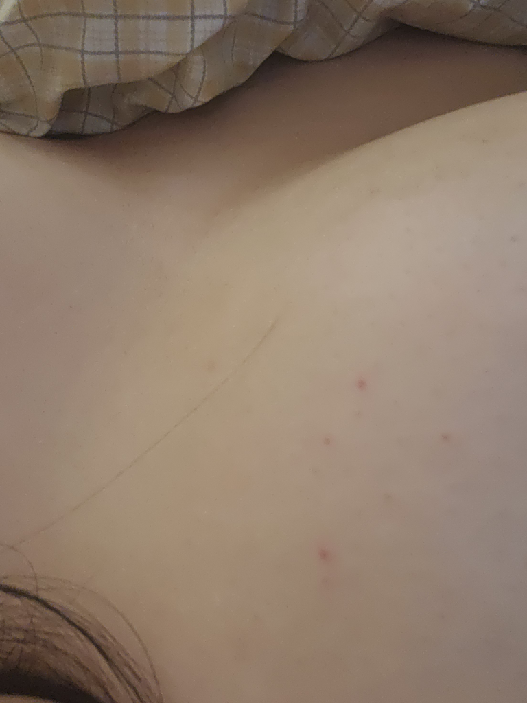 피부병변이 대상포진을 의심할만큼 군집을 이룬 상황은 아닌 것으로 보이는데, 그렇다면 통증의 원인이 다른 것일 수도 있겠습니다. 유방 통증의 가장 흔한 원인은 생리주기와 관련된 통증인데 주기적으로 나타나는 통증이 아니라고 생각되신다면 유방외과를 방문해 진찰받아보시는 편이 좋겠습니다.