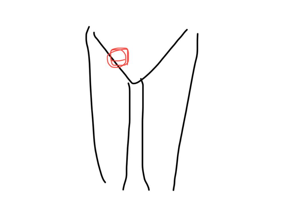 해당부위에 튀어나오는 덩이가 있다면 서혜부 탈장의 가능성이 있습니다.