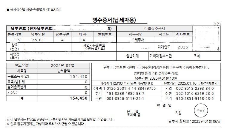10월 말에 퇴사했는데요. 오늘 퇴사했던 곳에서 대표님이 퇴사한 직원 갑근세와 주민세납부서라면서 보내시면서 자기한테 입금하라하셨는데