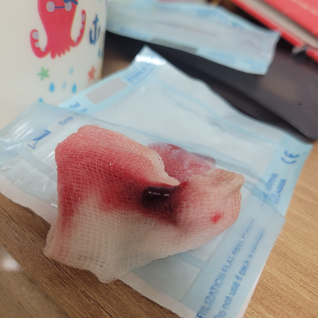 2.피나 침을 모두 삼켜주세요 : 피가 계속 난다고 뱉거나, 휴지로 닦아내시는 경우 음압이 생겨 피가 멈추지 않고 계속 나게 됩니다.