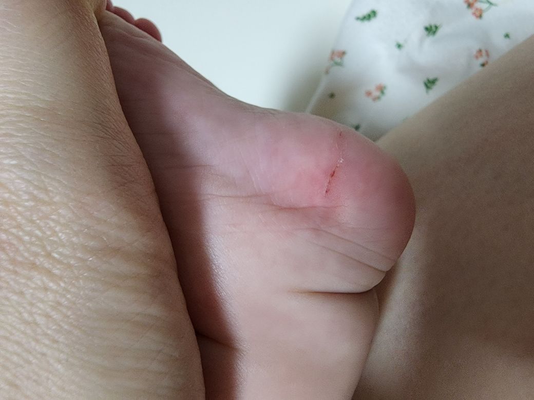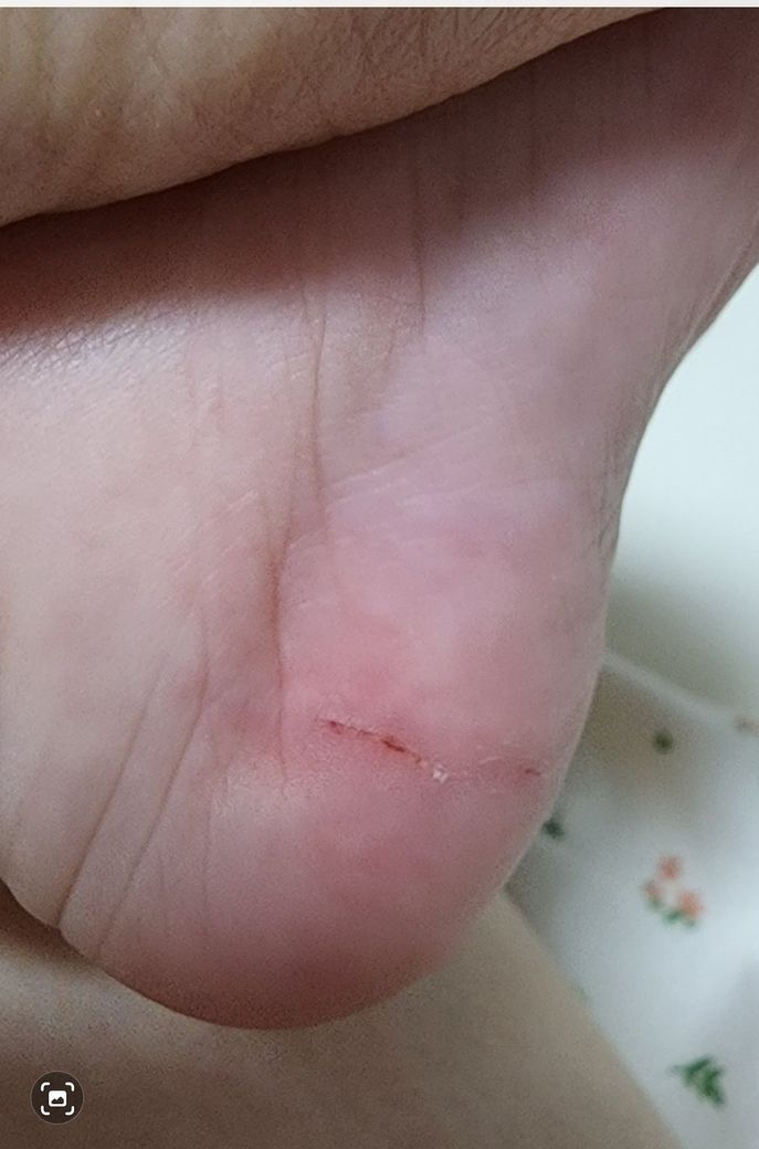 아기 발에 상처가 생겼어요 ㅠㅠ 어디서 그랬는지는 모르는데