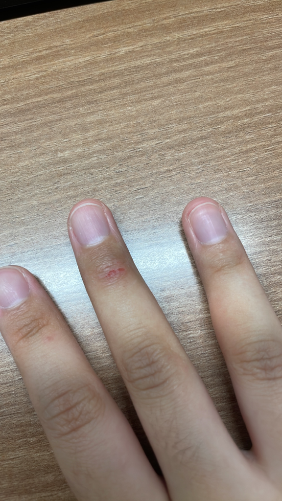 피부가 약간 벗겨진 모습을 보이는데 상처난 피부에는 아드반탄 연고가 좋지 않습니다. 피부과를 방문하셔야 하겠습니다.