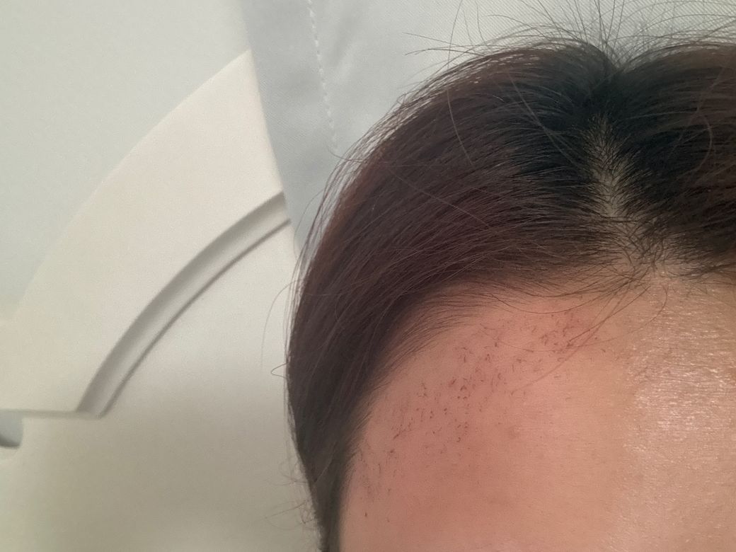 이마랑 헤어라인 레이저 제모 어제 처음으로 했는데 오늘 저녁에 보니까 이마에 딱지 같은것들이 엄청 생겼네요 .. 원래 이런건가요 ..? 막 오돌토돌하게 만져지진 않고 저렇게 빨간 상처만 생겼어요