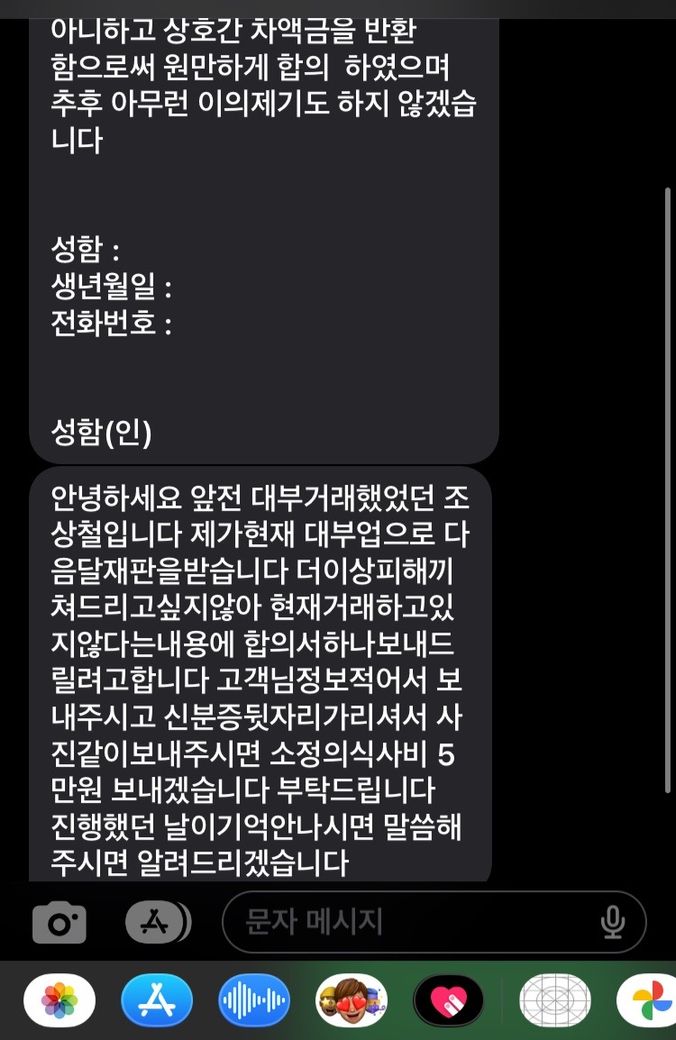 몇년 전 사채업자 한테 돈 빌린 적 있는데 뜬금 이런 문자가