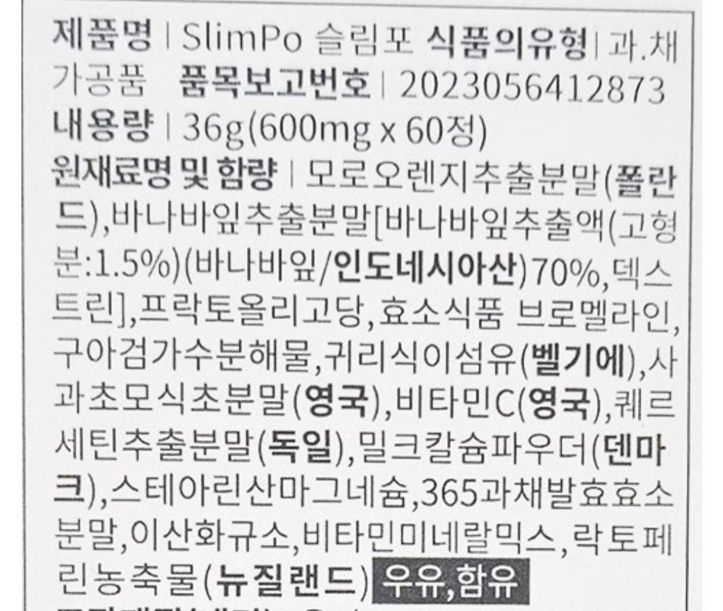 슬림포(주성분 모로오렌지, C3G, 브로멜라인, 퀘르세텐)