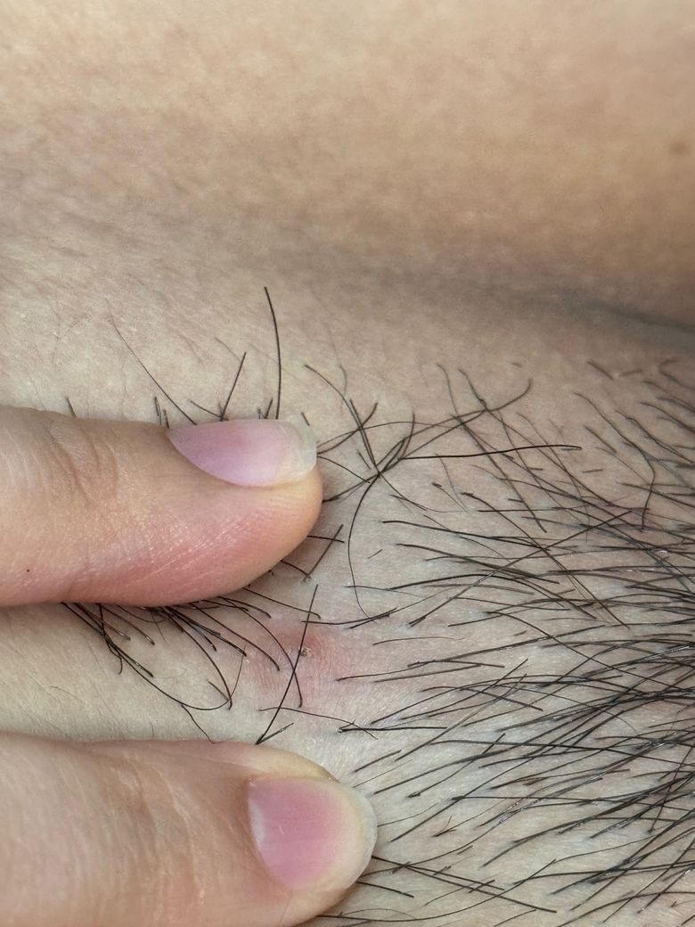 어제부터 갑자기 따갑고 빨갛게 부어오르는데, 면도로 인한 모낭염(인그로운헤어) 같기도 하고 헤르페스인 것 같기도 합니다. 사진 봐주세여