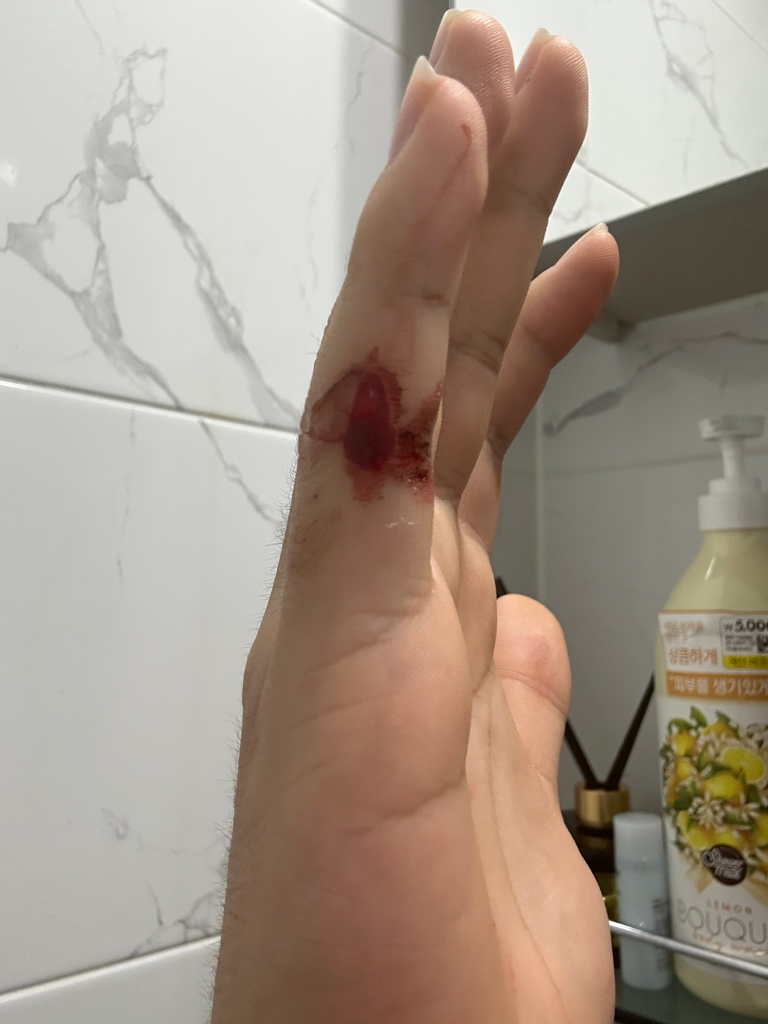 거즈나 데일밴드 붙이셔서 먼저 압박으로 지혈하시기 바랍니다.