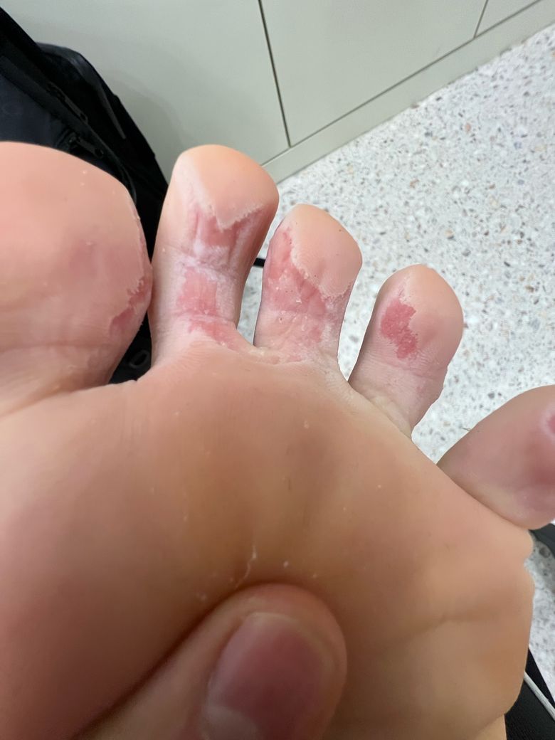 무좀인가여?? 발바닥에 뭔가 살이 사라졌다..?
