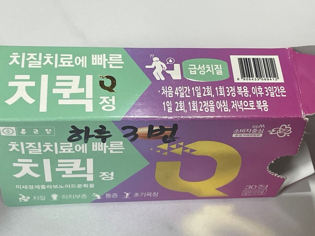 치퀵정은 미세플라보노이드 성분의 치질약입니다.