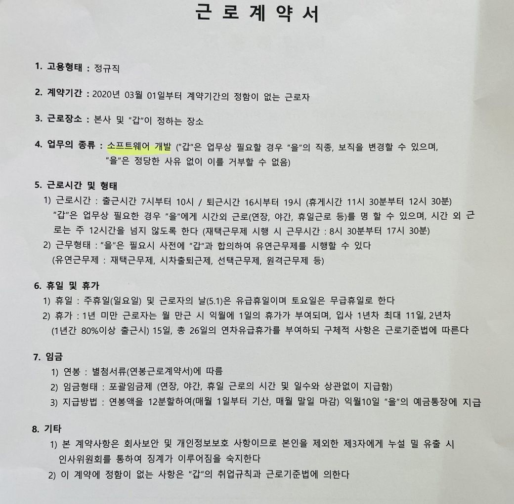 포괄연봉이고.. 계약서 양식에도 연봉액만 기재하는게 가능한 것 같은데.. 문제가 없는지요?