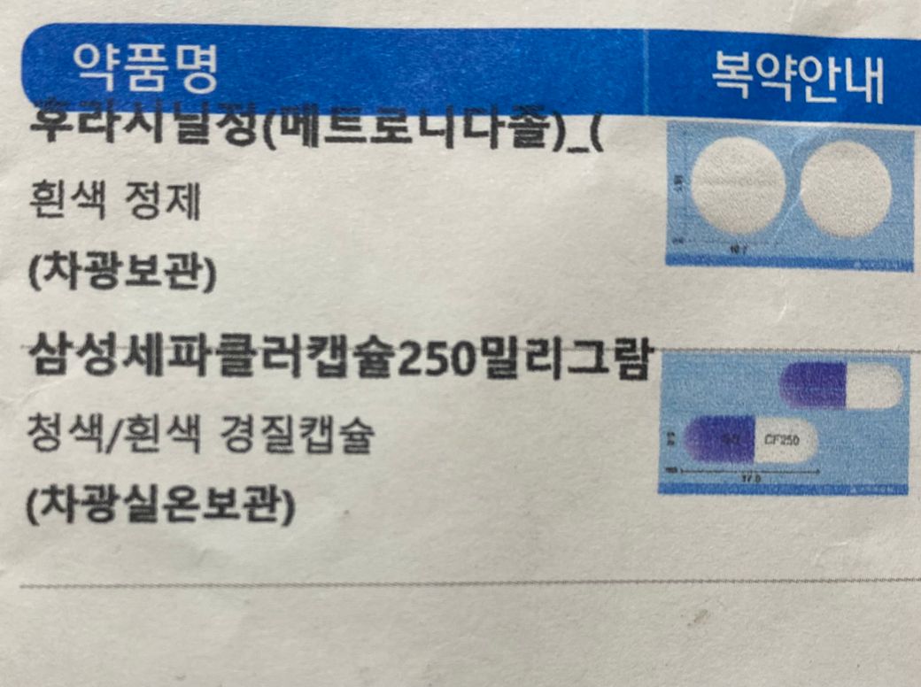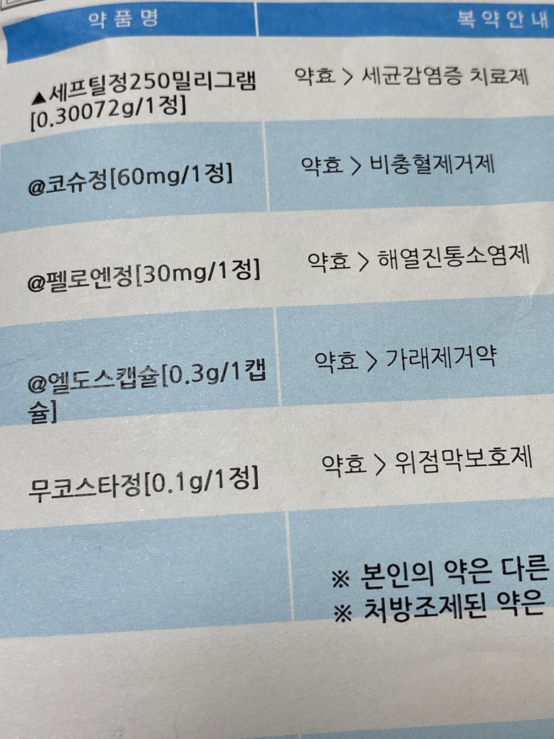 위에는 질염때문에 받은 거고 아래는 코감기로 받은 약이에요