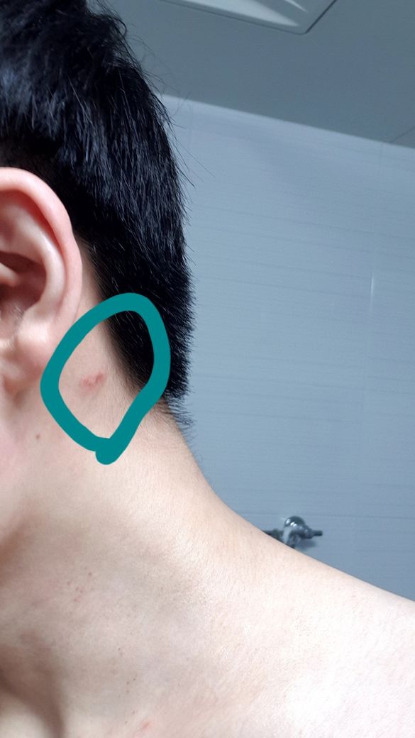 형태와 모양을 지금사진으로봤을때는 마스크 줄에의한 상처보다는 다른긁힌자국일가능성도 충분히 있습니다.