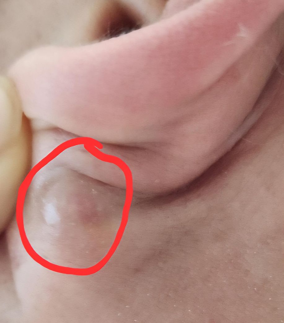 진단을 위해서 신체 진찰과 검사가 필요하겠으나 모낭염이나 피지낭종의 가능성이 생각되므로 감별 진단과 치료를 위해 이비인후과 진료를 받기 바랍니다.