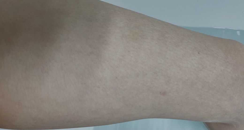유독 허벅지만 벌집 모양으로 붉은 혈관?이 보이는 현상이 있습니다.