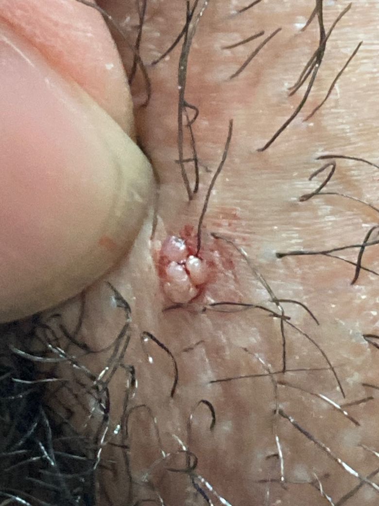 이런 경우 쥐젖(연성섬유종)일 가능성도 있지만, 발생 시기가 갑작스럽고 며칠 내 생겼다는 점, 그리고 짰을 때 상처가 난 점 등을 보면 쥐젖보다는 피지낭종, 피지선증식증, 모낭염 등 단순 피부질환일 가능성이 높아 보입니다. 곤지름(성기사마귀) 역시 다양한 형태가 가능하기 때문에 배제 하셔야 하구요. 다만 성 접촉 이력이 최근에 없었다면 가능성은 낮아 보입니다.