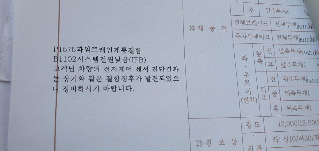 2011년 국내 RV차량인데..자동차 검사장에서 검사받은 결과 종합 결과서에 이런 문구가 있네요