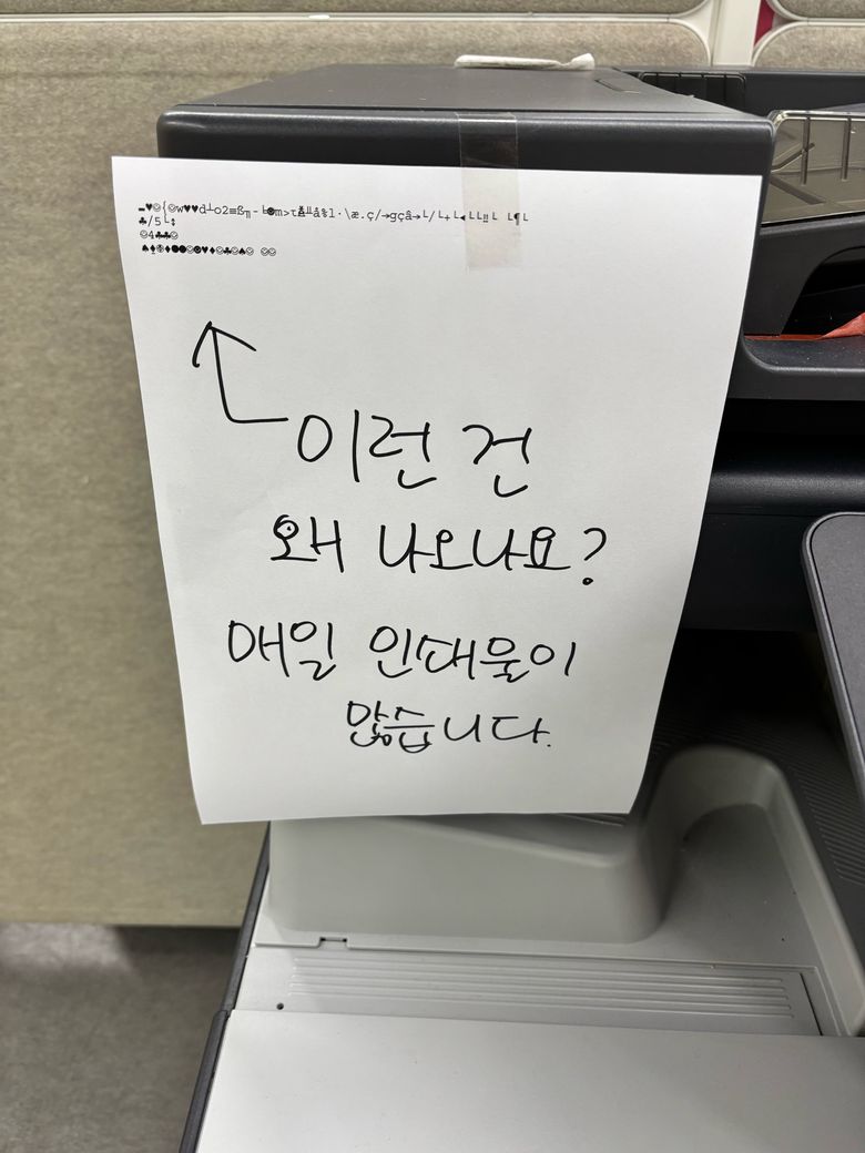 인쇄가 잘 되지 않습니다. 특히 이상한 문자 같은 걸로 뜹니다. 해결방안을 제시해주세요