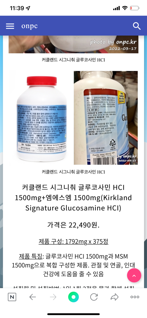 커클랜드 시그니춰 글루코사민 1500mg+MSM 1500mg
