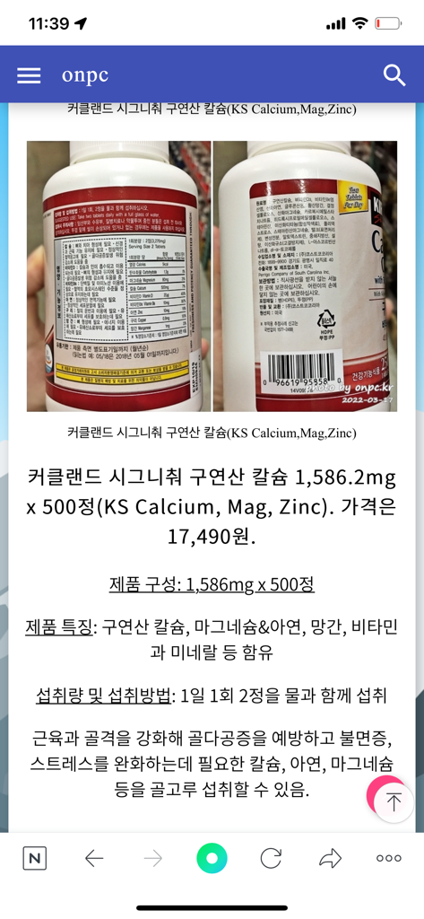 커클랜드 시그니춰 구연산 칼슘 1586.2mg