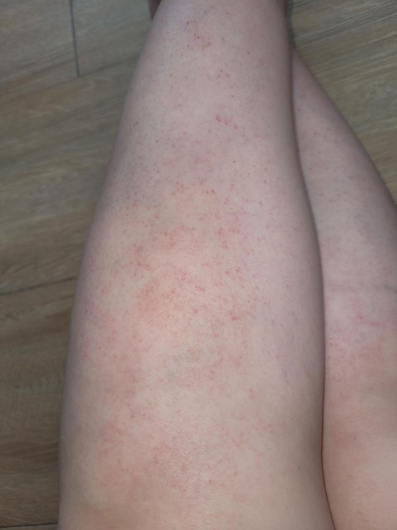 사진상 무릎 아래에 모낭을 중심으로 작은 붉은 구진들이 다수 퍼져 있는 형태입니다. 반복적으로 생겼다가 사라지고, 가려움이 동반되는 경과를 보면 단순 점상출혈이나 혈관질환보다는 모낭염 또는 자극성 피부염 양상이 더 타당합니다. 특히 면도, 마찰, 땀, 건조가 겹치면 이런 형태로 잘 나타납니다.