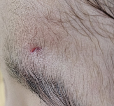 상처가 작아서 봉합까지는 하지 않을 것으로 보입니다. 가까운 피부과나 성형외과에서 스테리스트립으로 피부를 당겨놓을 수는 있을 것이라 예상하므로 가까운 곳을 방문해보시고 그 전까지는 마데카솔이나 후시딘과 같은 상처연고를 바른 뒤 습윤밴드로 덮어두시기 바랍니다.