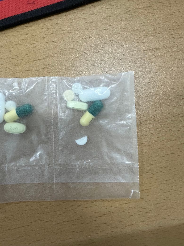 정제 중에 노란색으로 작은 동그란 알약입니다. 사진에 약이 온전히 다 나온 애들 중 왼쪽 위쪽쯤에 있네요.