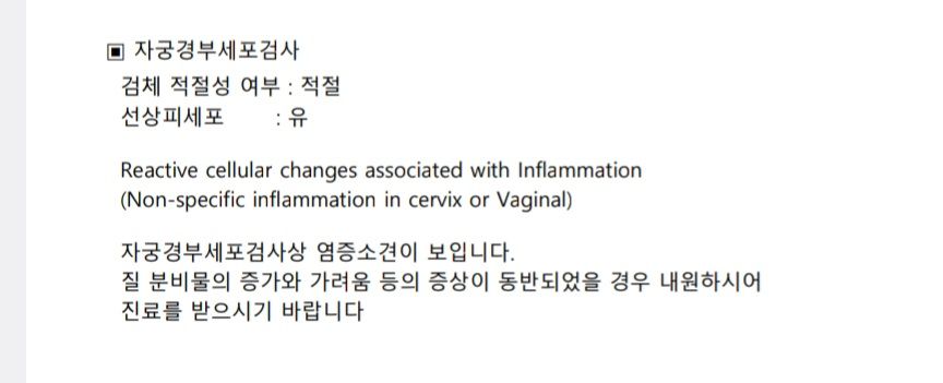 국가건강검진을 하며 자궁경부암 검사를 함께 받았는데 결과가 이렇게 떴습니다.