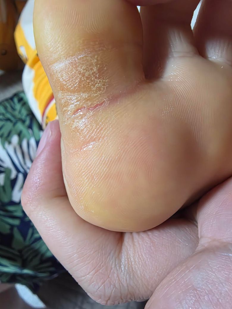 아이 발에 굳은살이 생기고 가운대가 갈라졌는대