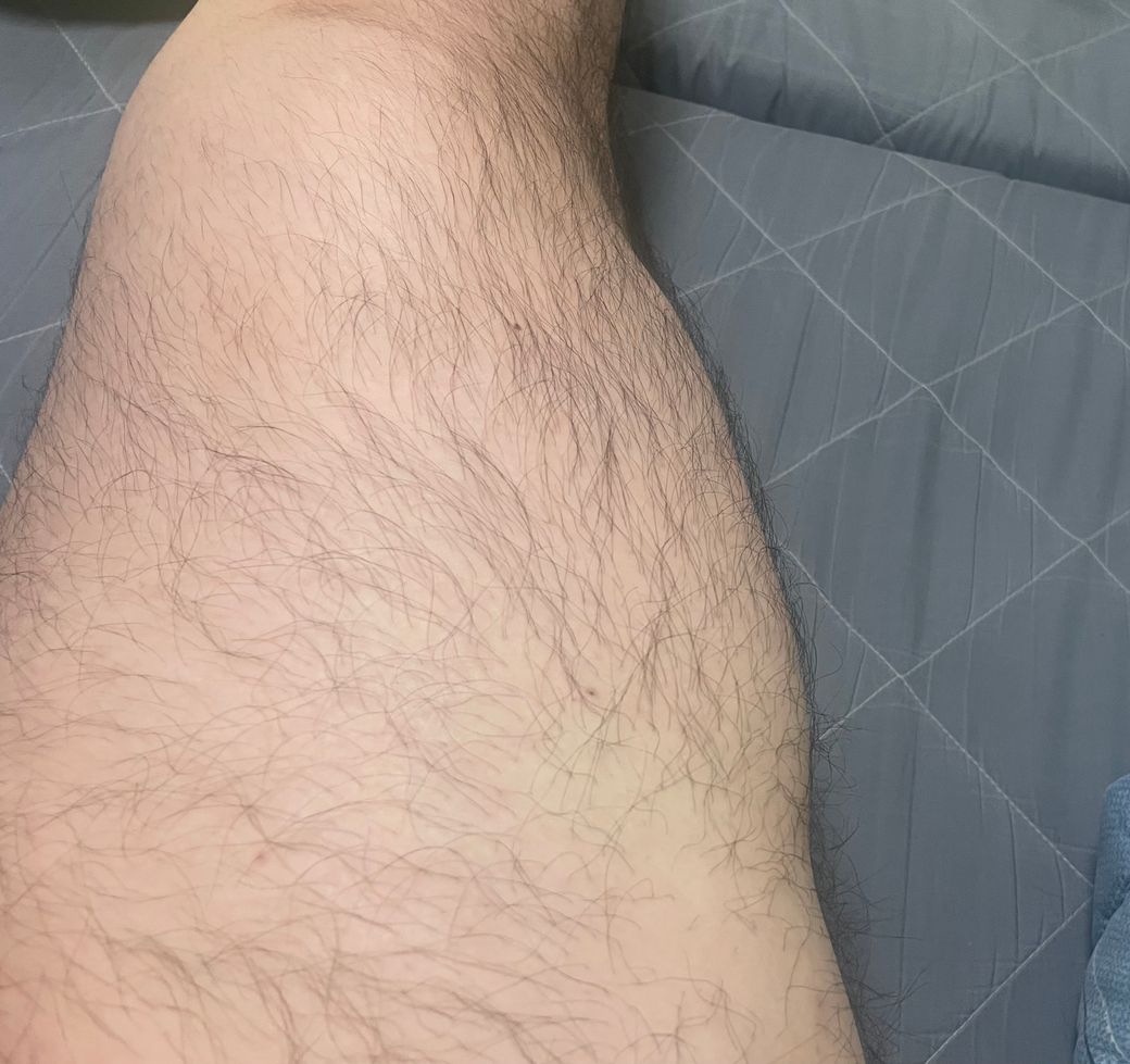 허벅지 지방위축인가요? 오른쪽 허벅지가 움푹 들어가있어요